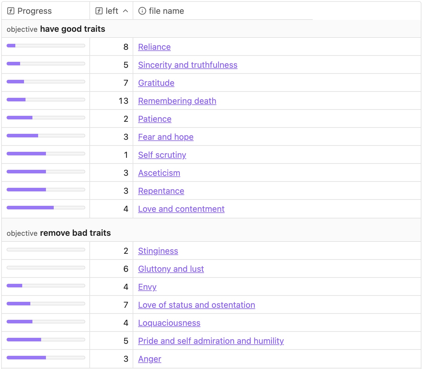 - Practical Knowledge Only: Focused exclusively on actionable knowledge, excluding abstract or faith-building exercises (some books from the Revival were excluded because of this). While the project is not intended to be a da'wah, any positive da'wah effect is welcome. For those seeking theoretical knowledge to ground their faith, seek other resources.